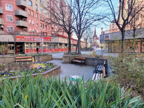 -Kiváló közlekedés: több buszjárat, 14-es villamos 4–5 perc sétára