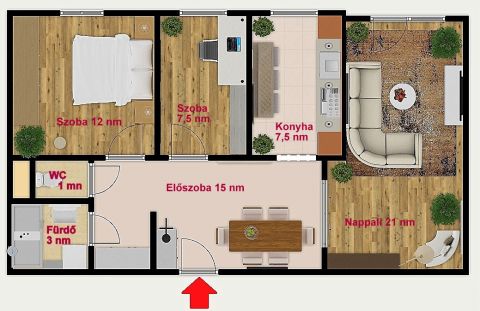 ✅ 2 + 1 félszoba + étkező szolgálja a család kényelmét