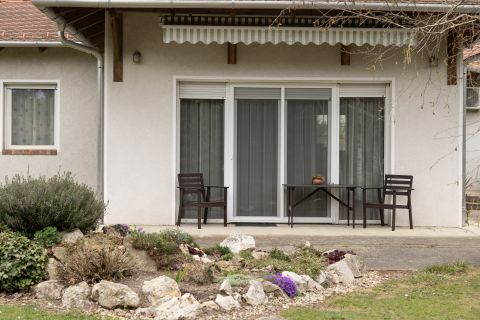 A hatalmas kertben elegendő hely van a kinti kertészkésre, szórakozásra.