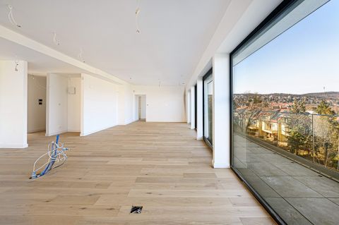 A lakás 5 szobából áll, köztük egy nagyméretű, impozáns nappaliétkezőkonyha élettérrel, három fürdőszobával, illetve külön gardróbhelyiséggel. A 2,9 méteres belmagasság és a hatalmas üvegfelületek lélegzetelállító panorámát és kivételes térérzetet biztosítanak.