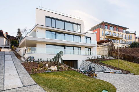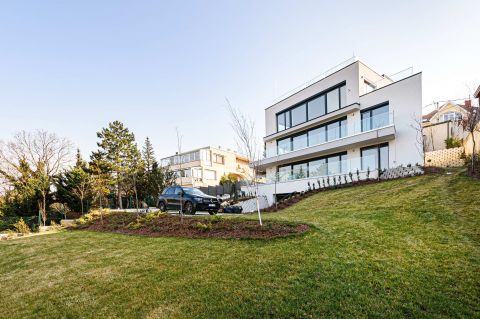 A közel 1500 m²-es telken megépült épületet egy neves építész tervezte, amelynek letisztult formavilága és harmonikus elrendezése tökéletes összhangban van a környék csendes, zöld környezetével. A lakás ÉK tájolású, így a terek egész nap világosak, a természet közelsége pedig minden helyiségből érezhető.