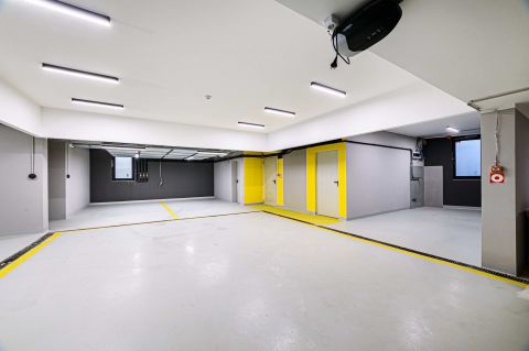 A lakáshoz három teremgarázs-beálló tartozik (20 M Ft/db), valamint egy nagyméretű, 12 m²-es tároló (10 M Ft).