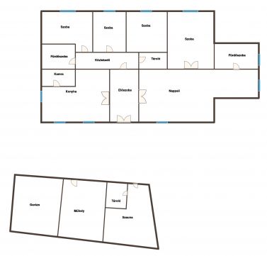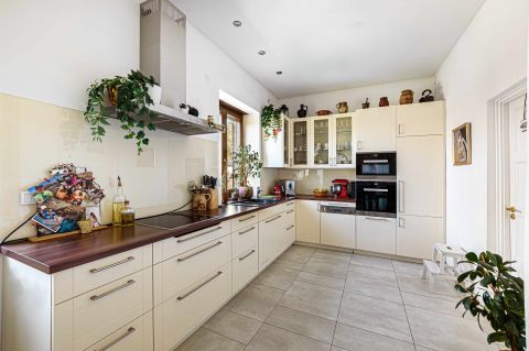 A nettó 185 m²-es lakótérhez egy közel 35 m²-es terasz, valamint egy mintegy 40 m²-es pince kapcsolódik, így az ingatlan nemcsak esztétikailag, hanem funkcionalitásában is teljes értékű életteret kínál. A belső terek arányosak, világosak, nagy belmagasságuk eleganciát és tágasságérzetet kölcsönöz. Az elrendezés jól átgondolt: a nappali mellett több külön nyíló szoba áll rendelkezésre, a fő hálószoba pedig saját fürdőszobával és két gardróbbal biztosít magas szintű kényelmet.