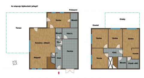 Az emeleten 4 hálószoba, egy gardrób és két fürdő + WC kapott helyet.